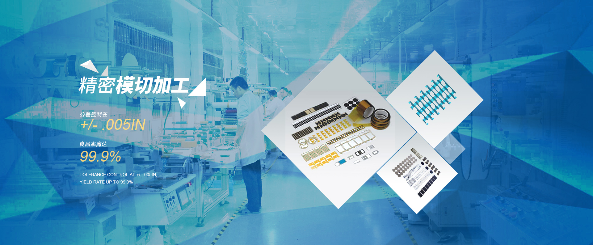 結合臺灣、國產模切機,共計25臺 ,擁有4條成熟模切組合QDC線,產品符合ROHS相關要求。